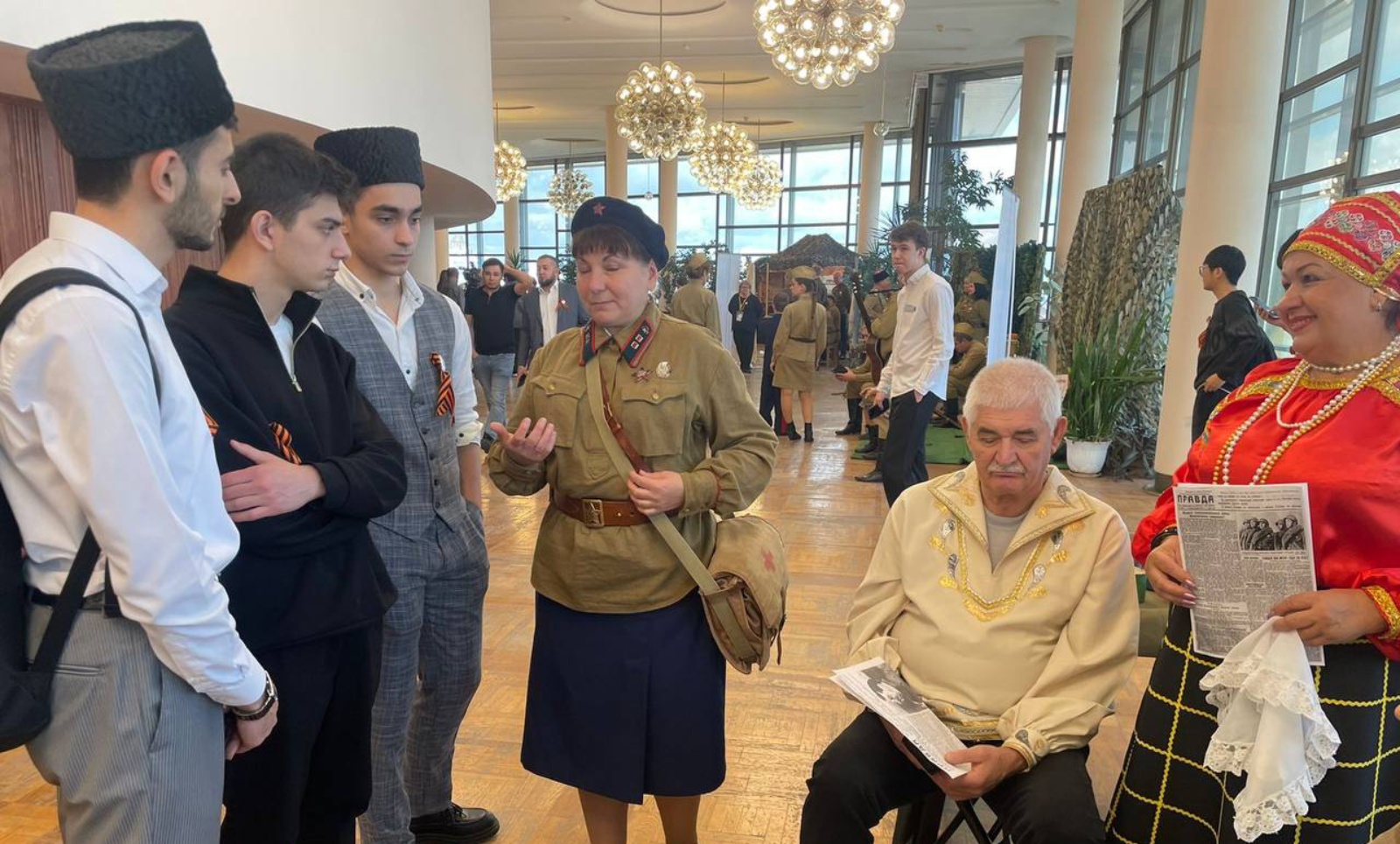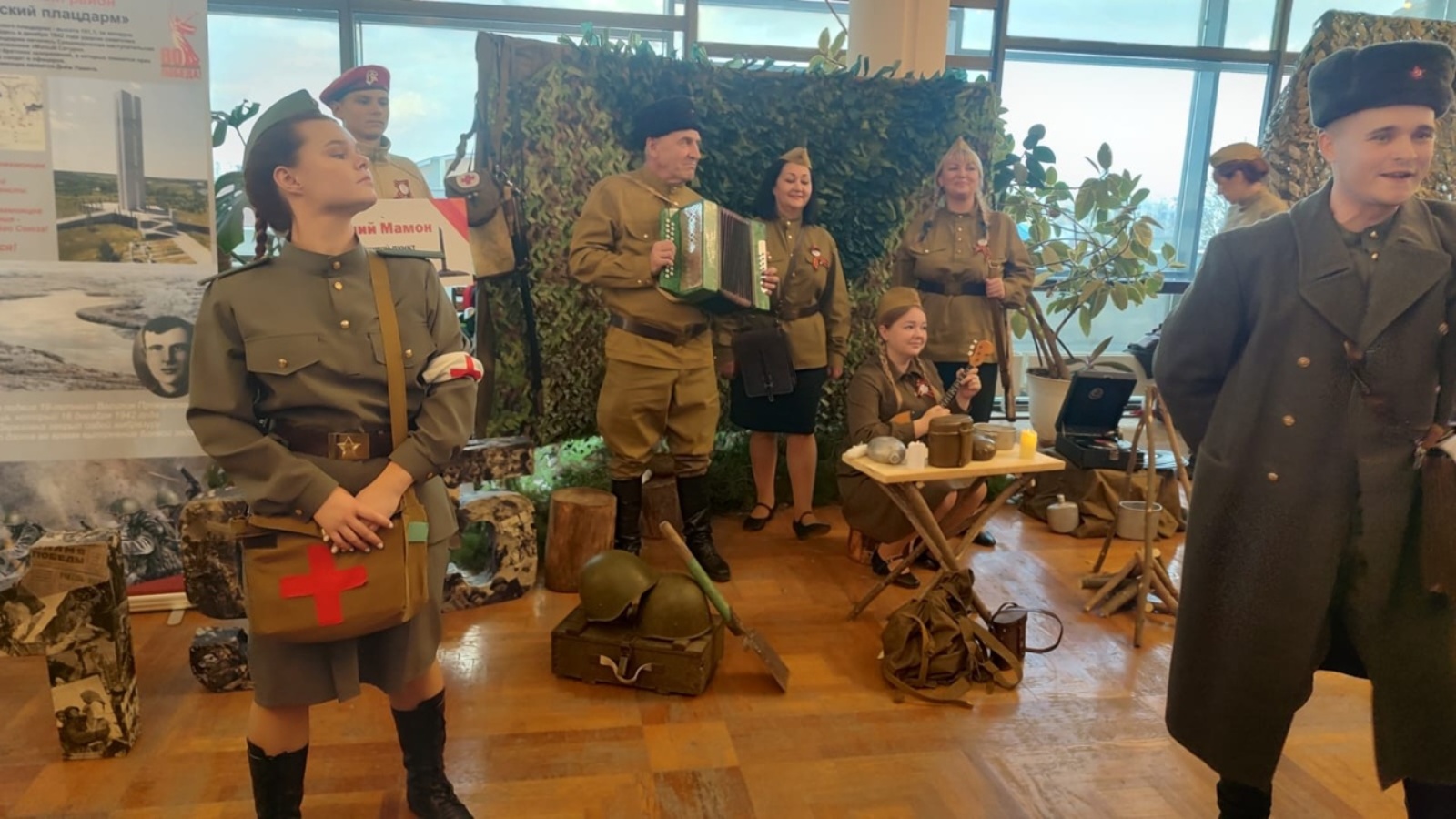 В фойе Воронежского концертного зала к празднику провели выставку экспонатов и картин, рассказывающих о подвигах советских солдат в период Великой Отечественной войны. На Воронежской земле с фашистами сражались представители практически всех народов Советского Союза. Кроме того, здесь же обустроили интерактивную локацию «Солдатский привал», где звучали песни и задорные частушки.