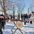 Отличились и местные силачи. Александр Баженов завоевал первое место, подняв гирю 64 раза – одной левой. Молодой человек – левша, в прошлом – профессиональный спортсмен-гиревик. Также для горожан организовали концертную программу и выставку-ярмарку мастеров декоративно-прикладного творчества. Неотъемлемым атрибутом Масленицы, конечно же, стали блины – с горячим чаем, сгущёнкой, сметаной и вареньем.