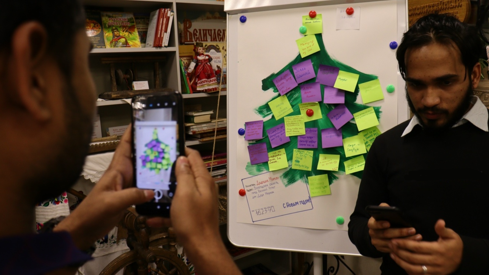 Каждый гость сфотографировался с Дедом Морозом и Снегурочкой, а уходя, с небольшим акцентом, совершенно искренне, благодарил за удивительный вечер и яркие эмоции, оставив добрые слова на родном языке на «Ёлке желаний».