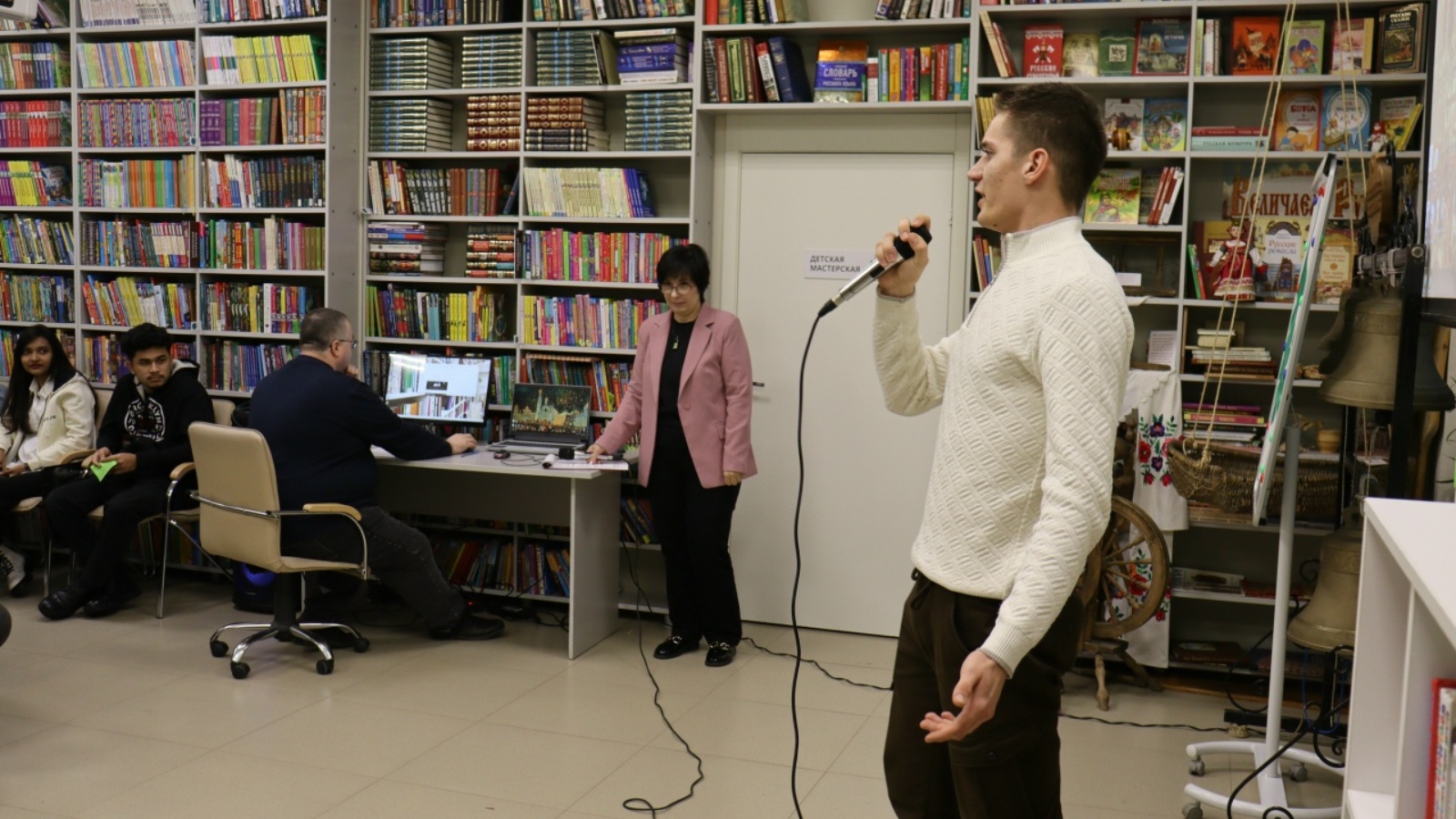 Сотрудники модельной библиотеки рассказали гостям, что накануне Нового года в России к многонациональному народу нашей страны с добрыми пожеланиями, словами поддержки и мудрыми наставлениями ежегодно обращается Президент РФ Владимир Путин. Коллектив библиотеки призвал ребят и в эту праздничную ночь включить телевизор и посмотреть обращение главы нашего государства.