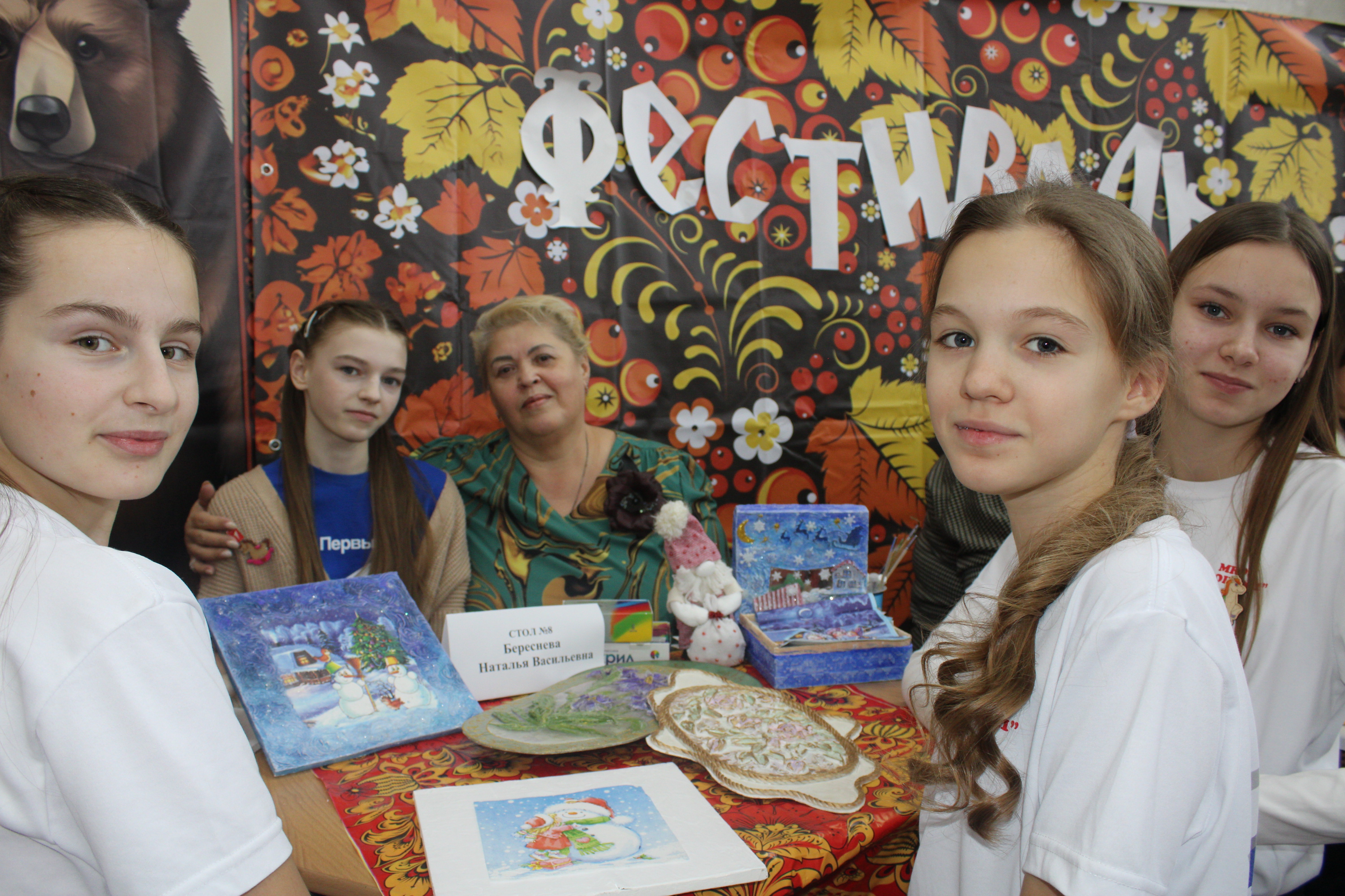 Затем работу начали семейные творческие мастерские. Мастера и мастерицы передали ребятам свои ремесленные навыки. Например, умения в бисероплетении представила семья Устиновых, Чигаревы учили создавать расписные пряники, а Наталья Береснева с внучкой Евой представили рельефную живопись с декупажем. Любовь Хрыкина организовала выставку вязаных изделий.