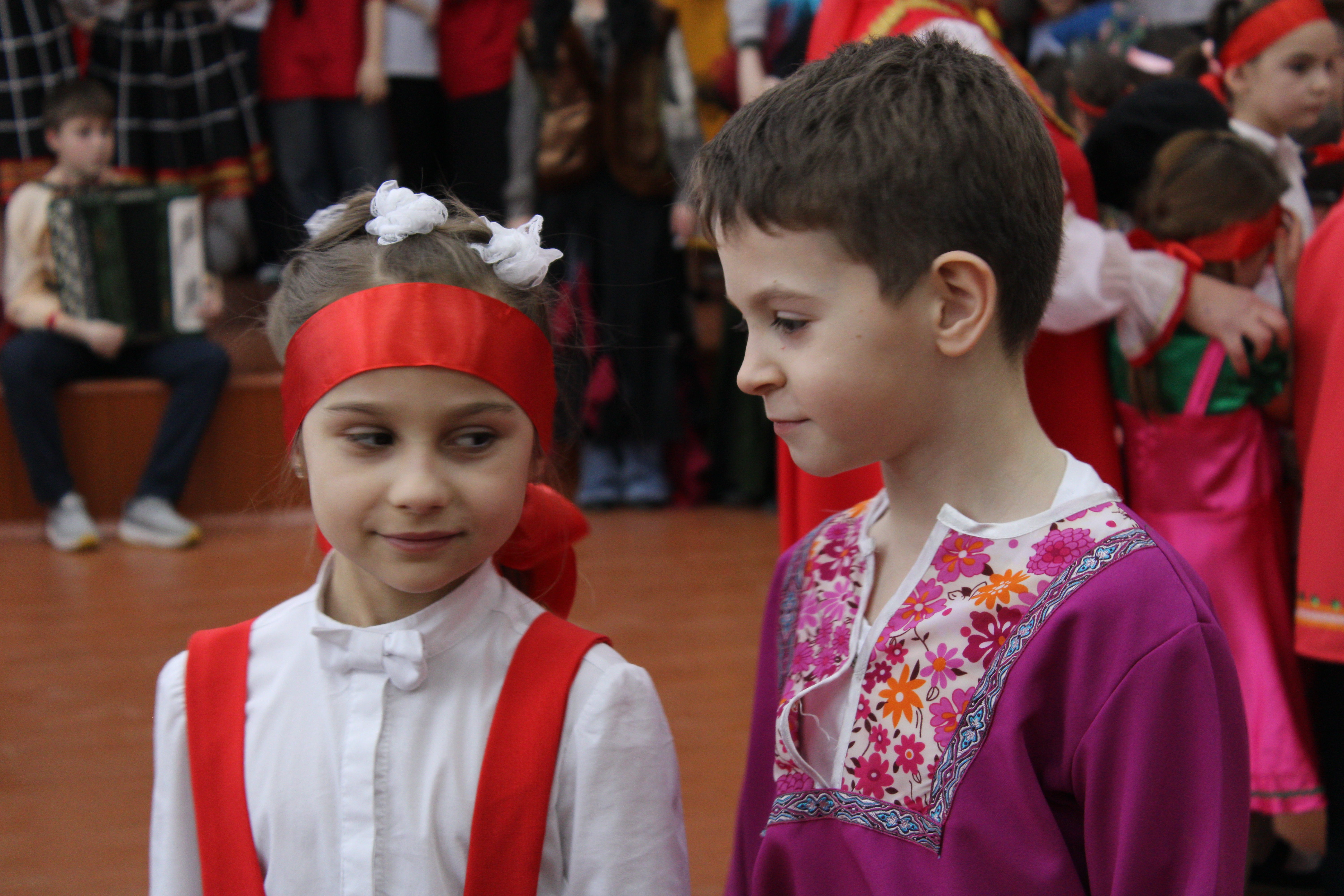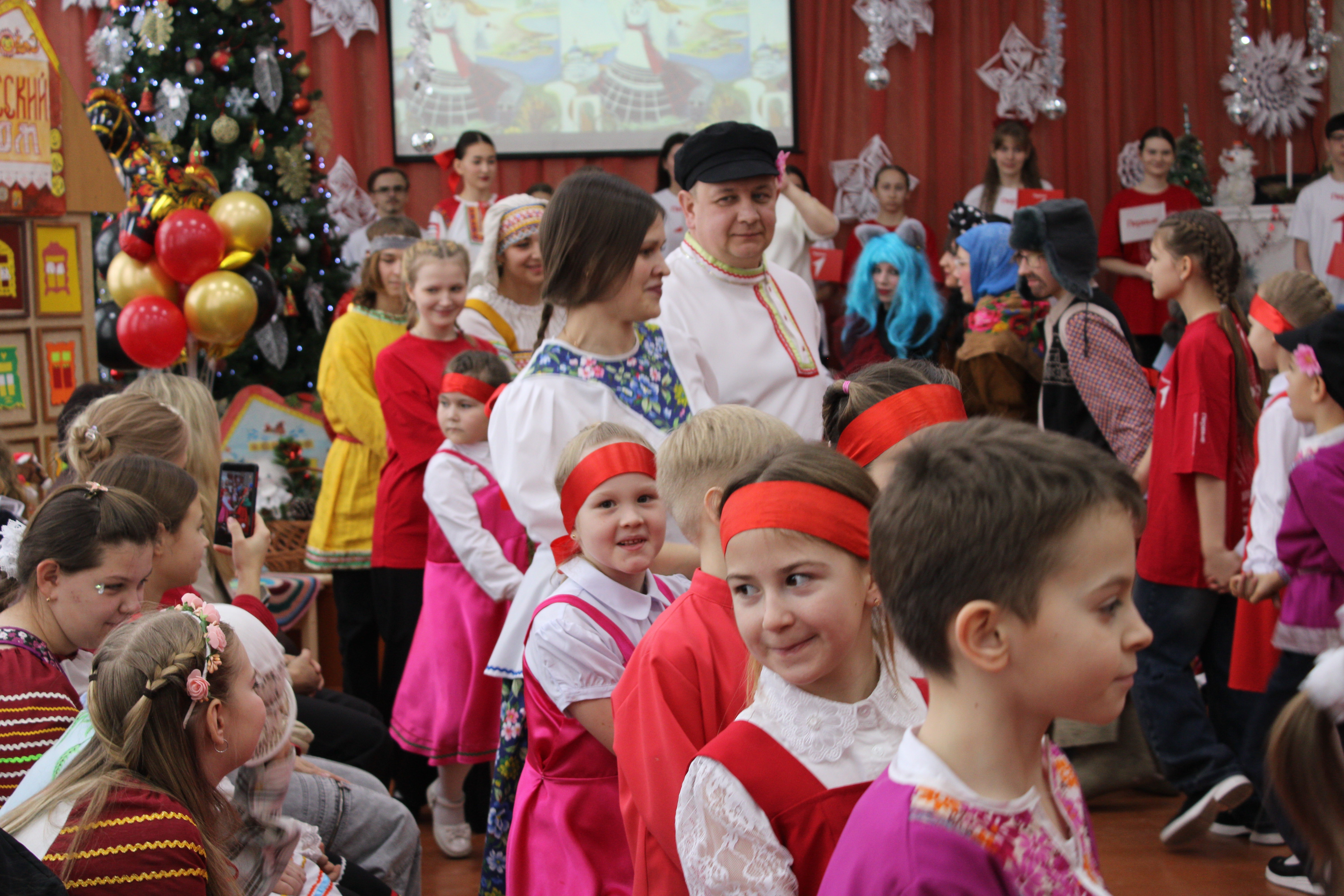 Между обрядами дети включились в старинные посиделочные игры: водили хоровод под народные песни, соревновались в ловкости, заплетая и расплетая яркие ленты, и отгадывали тематические загадки.