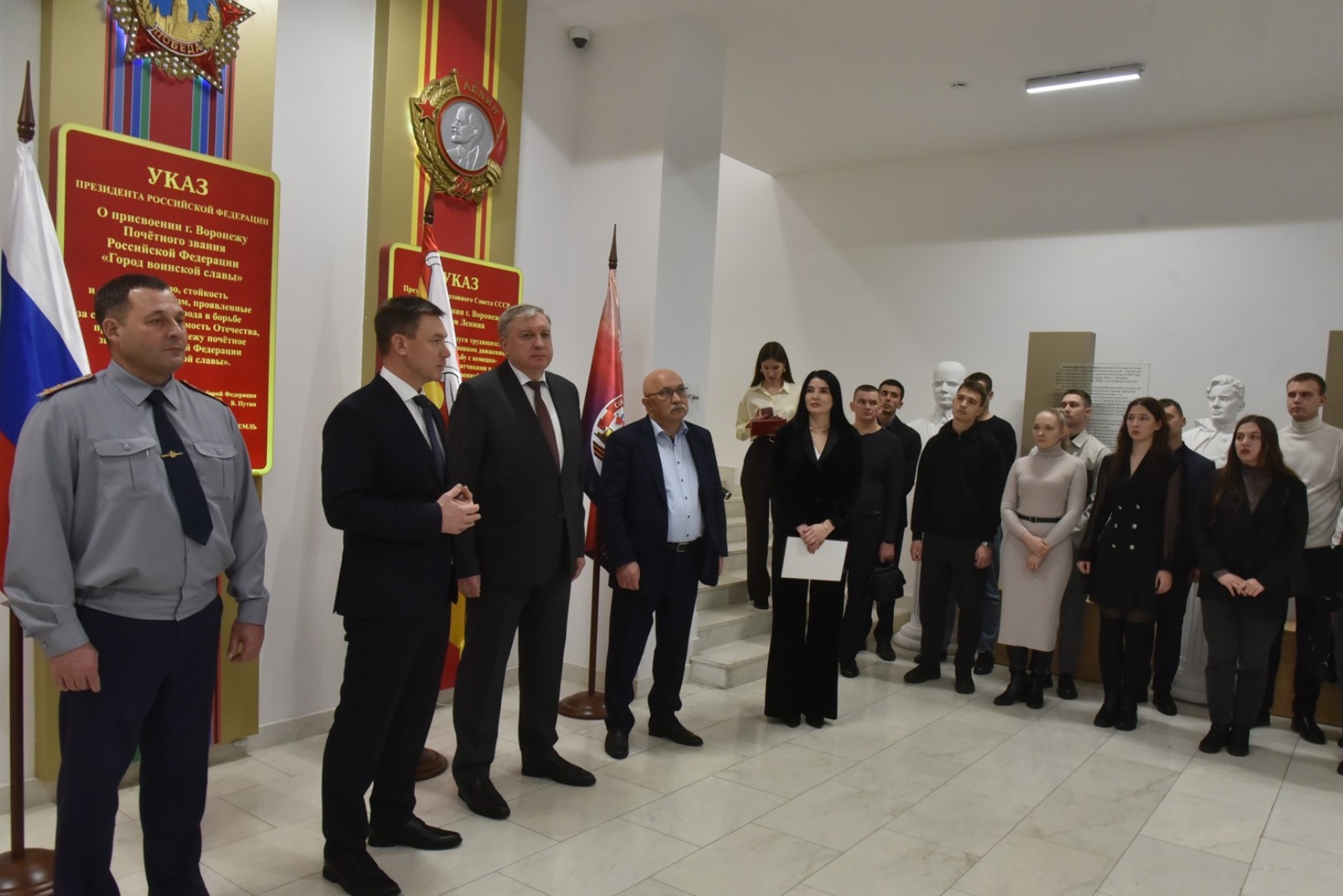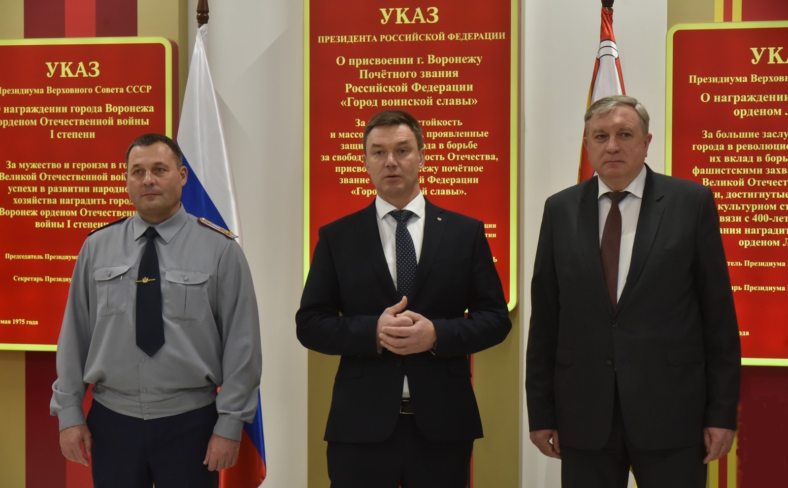На торжественном открытии выставки также присутствовали начальник УФСИН России по Воронежской области Алексей Ашурков, президент адвокатской палаты Воронежской области Олег Баулин, директор Музея-диорамы Александр Картавцев, студенты Воронежского института ФСИН России.
