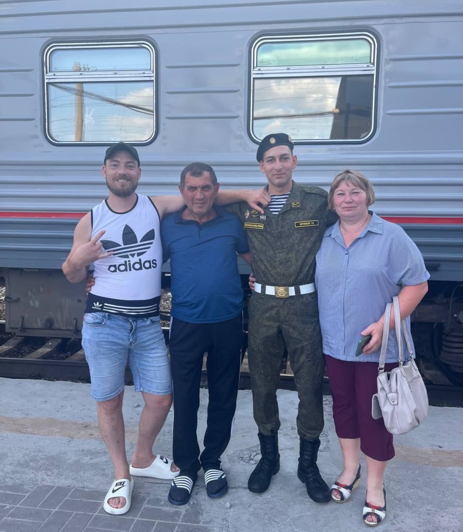 Момент встречи сына Георгия из армии. На фото слева направо Александр, Вахтанг, Георгий и Наталья