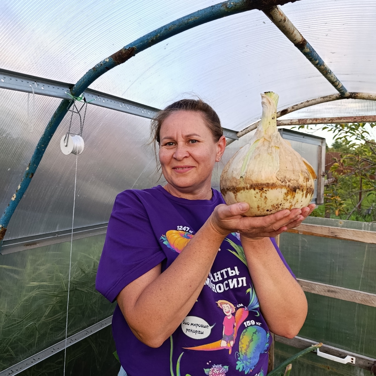 Семена лука на рассаду Наталья Ташаева посадила 9 января. За девять месяцев овощ набрал вес 2,1 кг