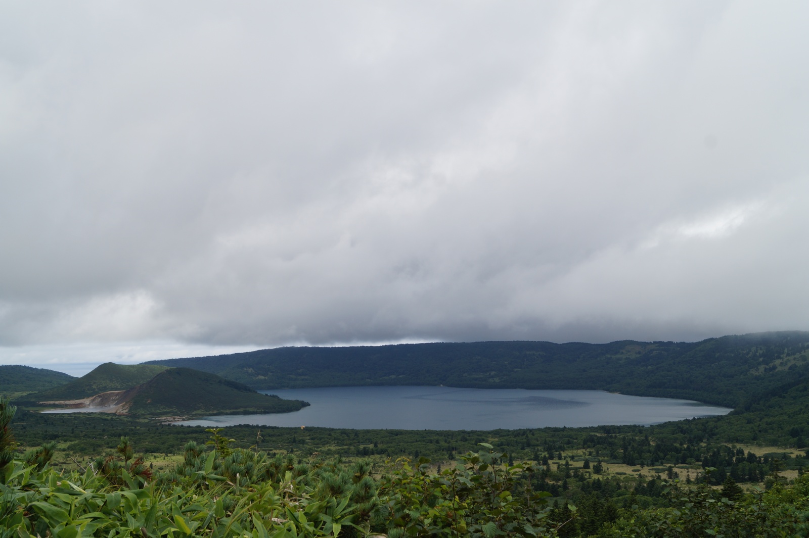 Ровно в полдень приехали к началу маршрута, ведущего в кальдеру вулкана Головнина. Здесь прошли пограничный контроль и выдвинулись в путь. Предстояло идти по глиняной дороге с лужами и грязью. Начался крутой спуск и открылся панорамный вид на кальдеру с её озёрами. Сначала побывали на озере Кипящем. Вода в нём может достигать 50-60 градусов из-за бьющих на его берегах кипящих родников. Также со дна озера периодически могут происходить выбросы кипятка. Из-за таких условий купаться здесь запрещено. Над озером постоянно клубится пар, создавая мистическое впечатление. Из небольших фумарол пробиваются газы сероводорода и водяного пара.