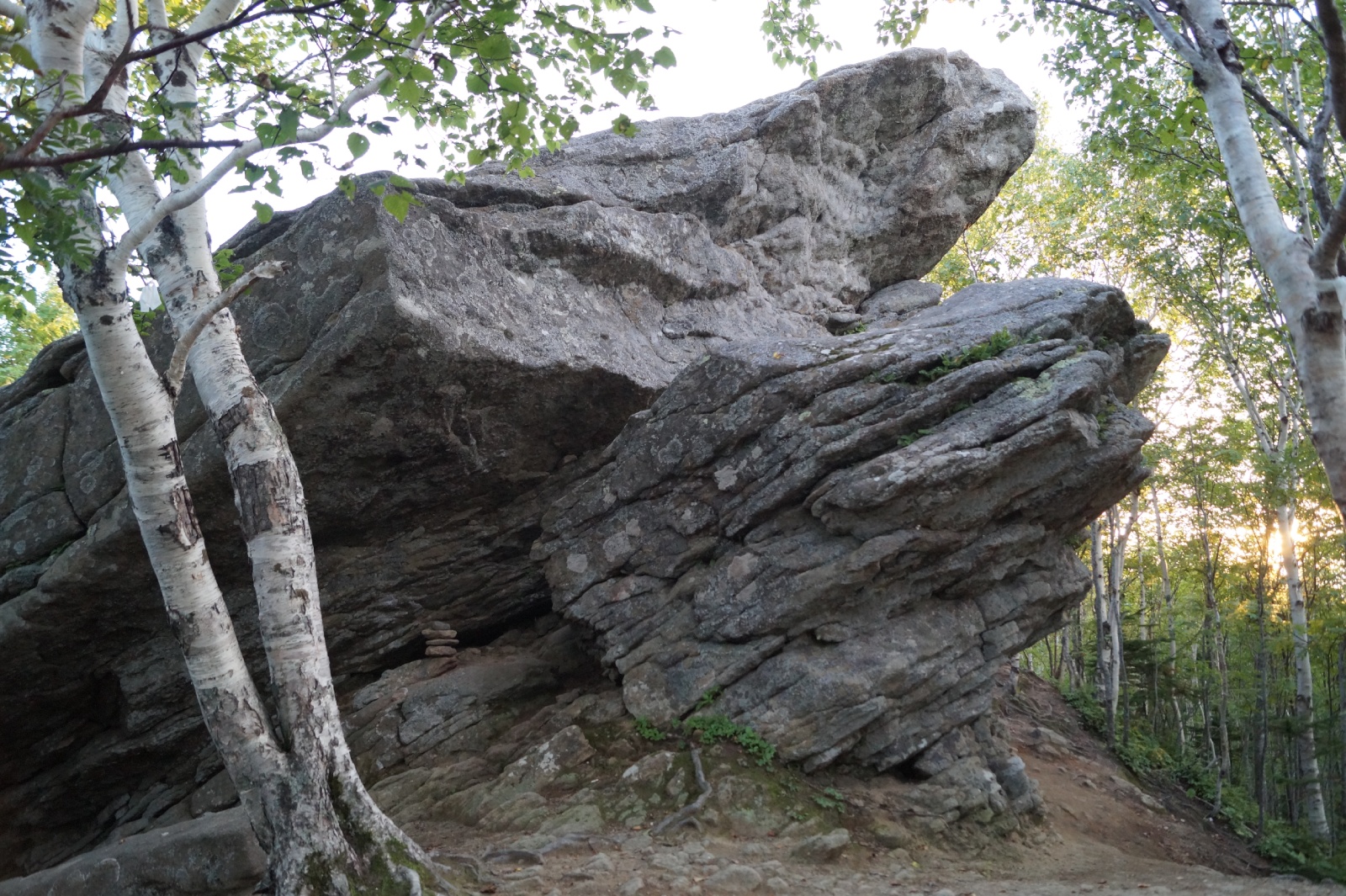 Побывали на останце с интересным названием Лягушка. Когда приехали, на часах время неумолимо приближалось к 20 часам. Прошли по деревянному настилу к металлической лестнице. Стали подниматься на гору. Преодолев около 450 ступеней, через 15 минут были на вершине у Лягушки, которая представляет собой слоистый каменный останец, по виду действительно похожий на земноводное. С его вершины открывался великолепный вид на множество сопок и горные долины.