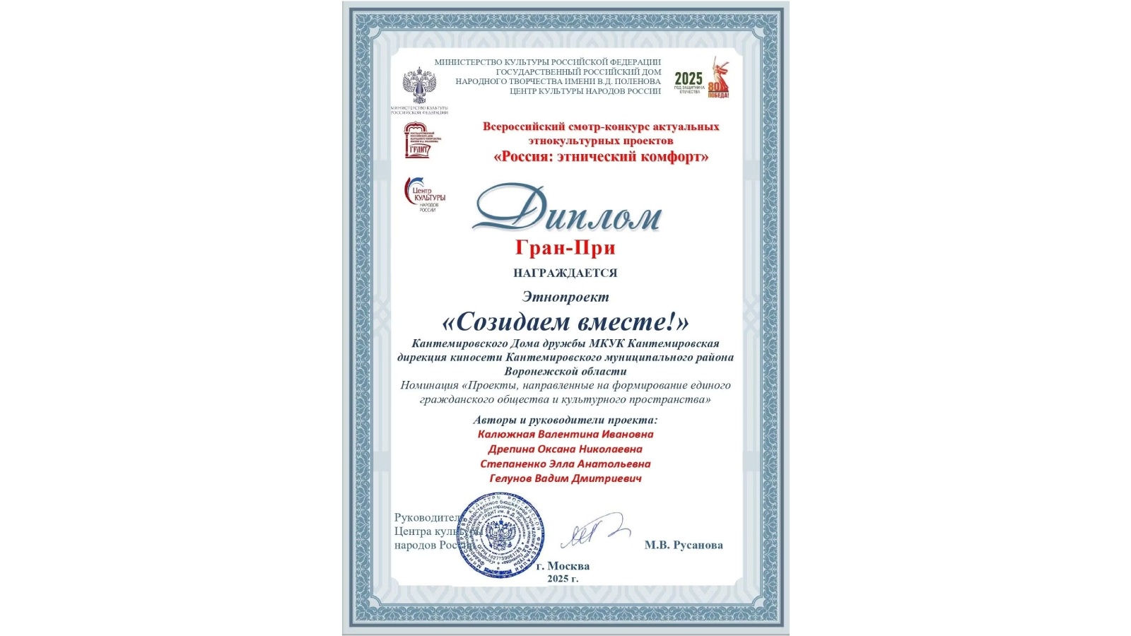 - Наш проект получил гран-при в номинации «Проекты, направленные на формирование единого гражданского общества и культурного пространства». Он направлен на укрепление межкультурного диалога и патриотического сотрудничества с Луганской Народной Республикой, - рассказала Валентина Ивановна. - Проект включал совместные мероприятия, реализованные в 2024-2025 годах. Среди них - видеомарафоны, фестивали, патриотические эстафеты и мотопробеги, а также встречи с активистами на форумах, семинарах и круглых столах.