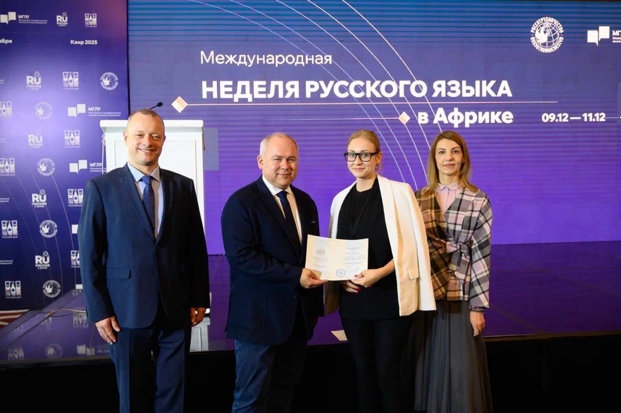 Неделя русского языка в Африке завершилась торжественным вручением её участникам документов о повышении квалификации. Среди почётных гостей церемонии были Чрезвычайный и Полномочный посол РФ в Египте Георгий Борисенко, заместитель руководителя Россотрудничества Павел Шевцов и руководитель представительства Россотрудничества в Египте Вадим Зайчиков.