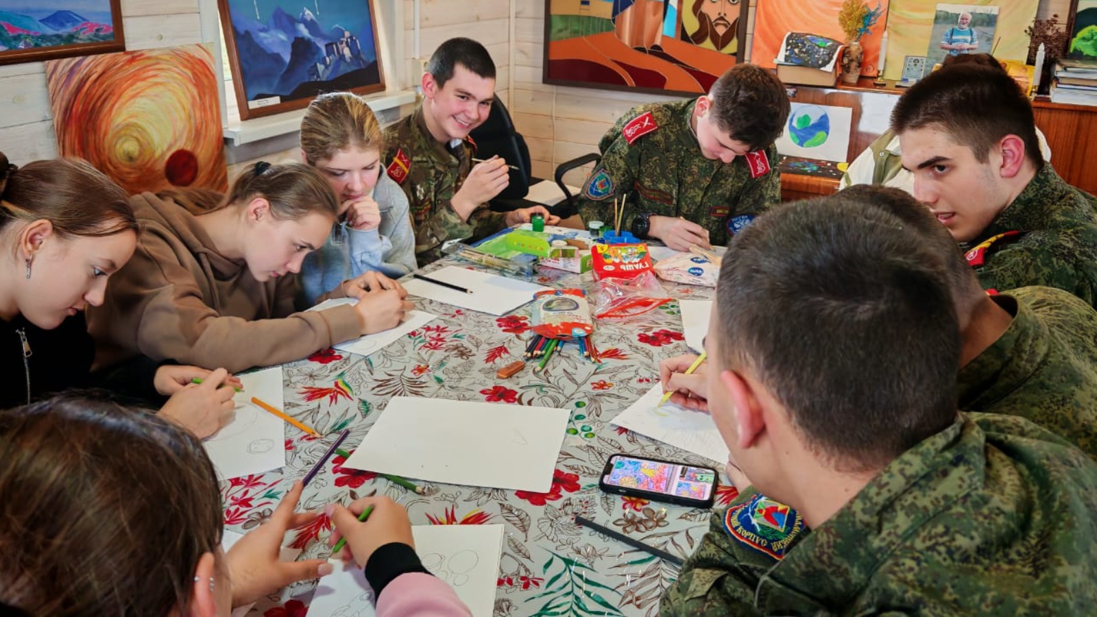 Ребята посмотрели репродукции картин Рериха и Лебедева, сами взялись за кисти и краски.Творческую мастерскую с кадетами провела Ирина Нетёсова.