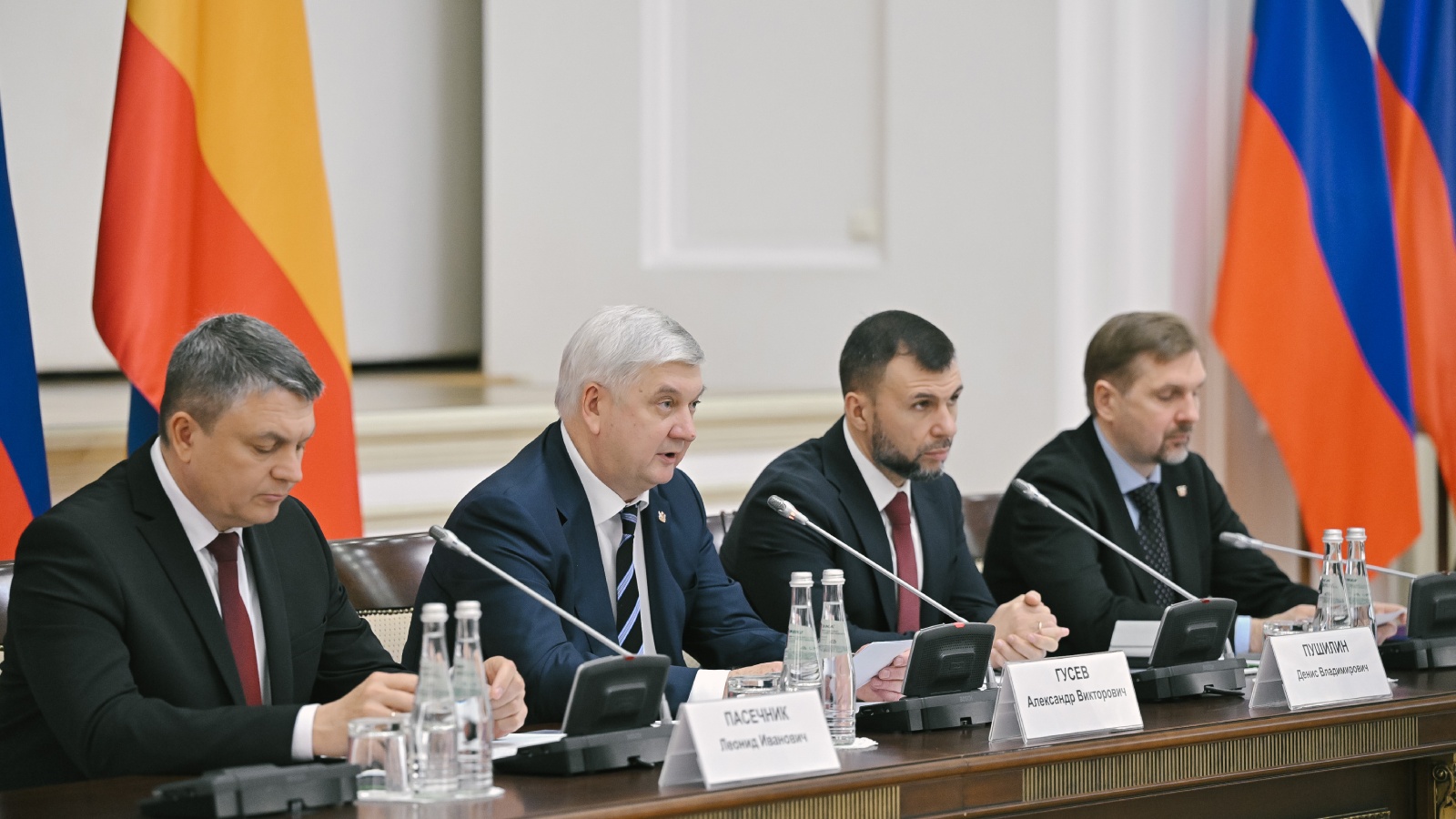 26 ноября в столице Черноземья прошло заседание Совета Содружества «Донбасс». На совещании были подведены итоги работы отраслевых рабочих групп и озвучены предложения в план работы на 2026 год. В мероприятии приняли участие Губернатор Воронежской области Александр Гусев, глава Донецкой Народной Республики Денис Пушилин, глава Луганской Народной Республики Леонид Пасечник и первый заместитель губернатора Ростовской области Алексей Господарев.
