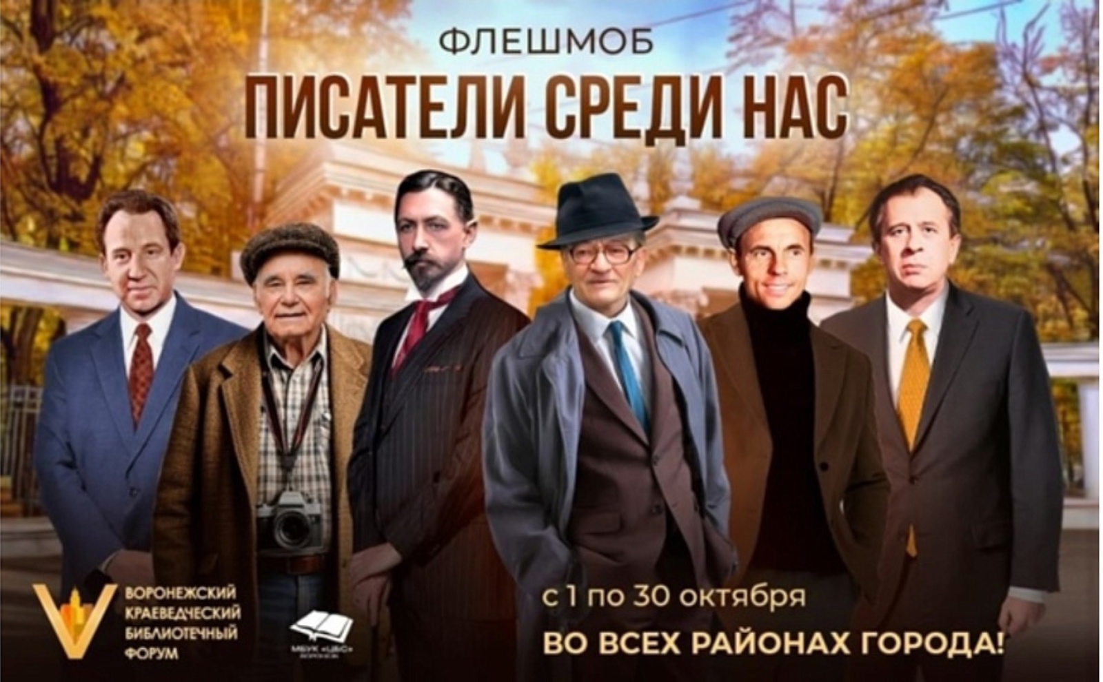 В течение месяца на пяти площадках города десять ростовых фигур литераторов-юбиляров 2024 – 2025 гг, чьи имена носят библиотеки города Воронежа, были представлены в формате передвижной интерактивной галереи. Воронежцам предстали Андрей Платонов, Владимир Добряков, Алексей Кольцов, Иван Никитин, Гавриил Троепольский, Владимир Гордейчев, Анатолий Жигулин, Алексей Прасолов, Иван Бунин, Василий Песков. Размещённый на каждой фигуре QR-код позволял перейти по нему и услышать голос писателя, обращённый к потомкам. Дополняли галерею площадки с мастер-классами, организованными сотрудниками библиотек по мотивам творчества писателей. На импровизированной сцене работал открытый микрофон для желающих прочесть стихи или фрагменты из прозы знаменитых земляков, познакомить со своим творчеством.