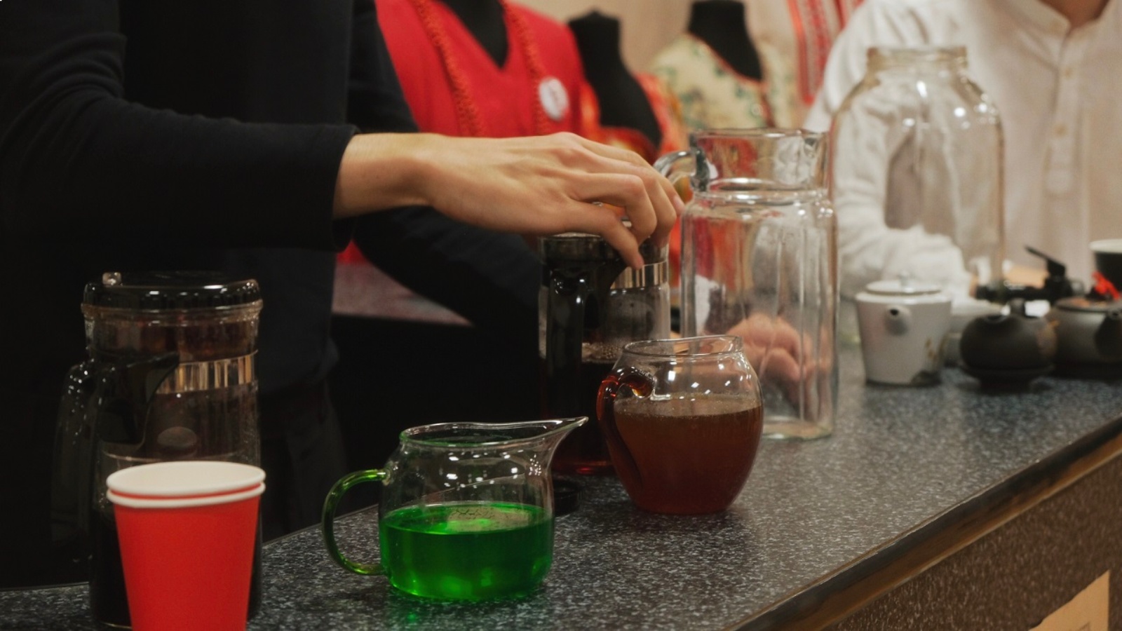 Кульминацией встречи стало захватывающее шоу чайных коктейлей от братьев Фёдора и Егора Кирющенко - студентов инженерно-технического факультета ВГУИТ. Имея за плечами богатый опыт в чайных церемониях, ребята рассказали о китайском чае, его видах, отличиях от отечественных сортов, и напомнили о полезных свойствах напитка, богатого антиоксидантами, танинами, флавоноидами и другими ценными веществами.