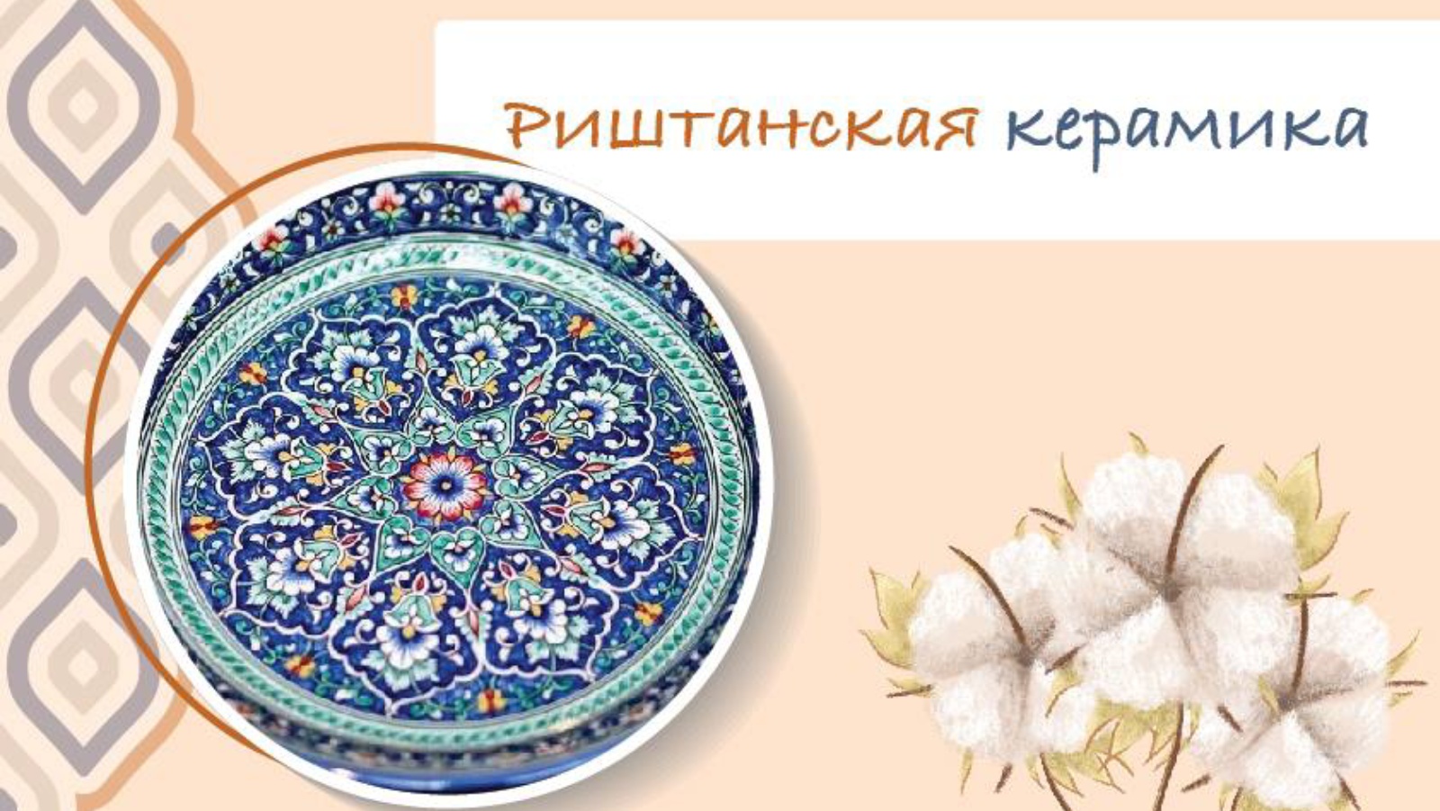 Риштан (Ферганская долина) — Король синего кобальта. Он знаменит глубоким бирюзовым и ультрамариновым цветом, который не спутаешь ни с чем. Орнамент — сочные «ветви миндаля» (бодом), строгие геометрические сетки (ислими), стилизованные цветы. Это аристократ узбекской керамики.